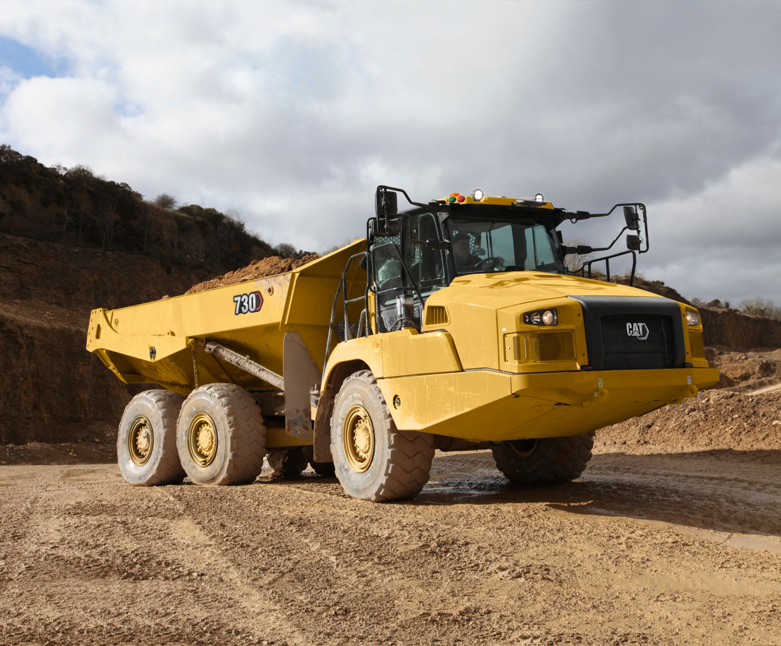 The 730 articulated dump truck model is manufactured by caterpillar.