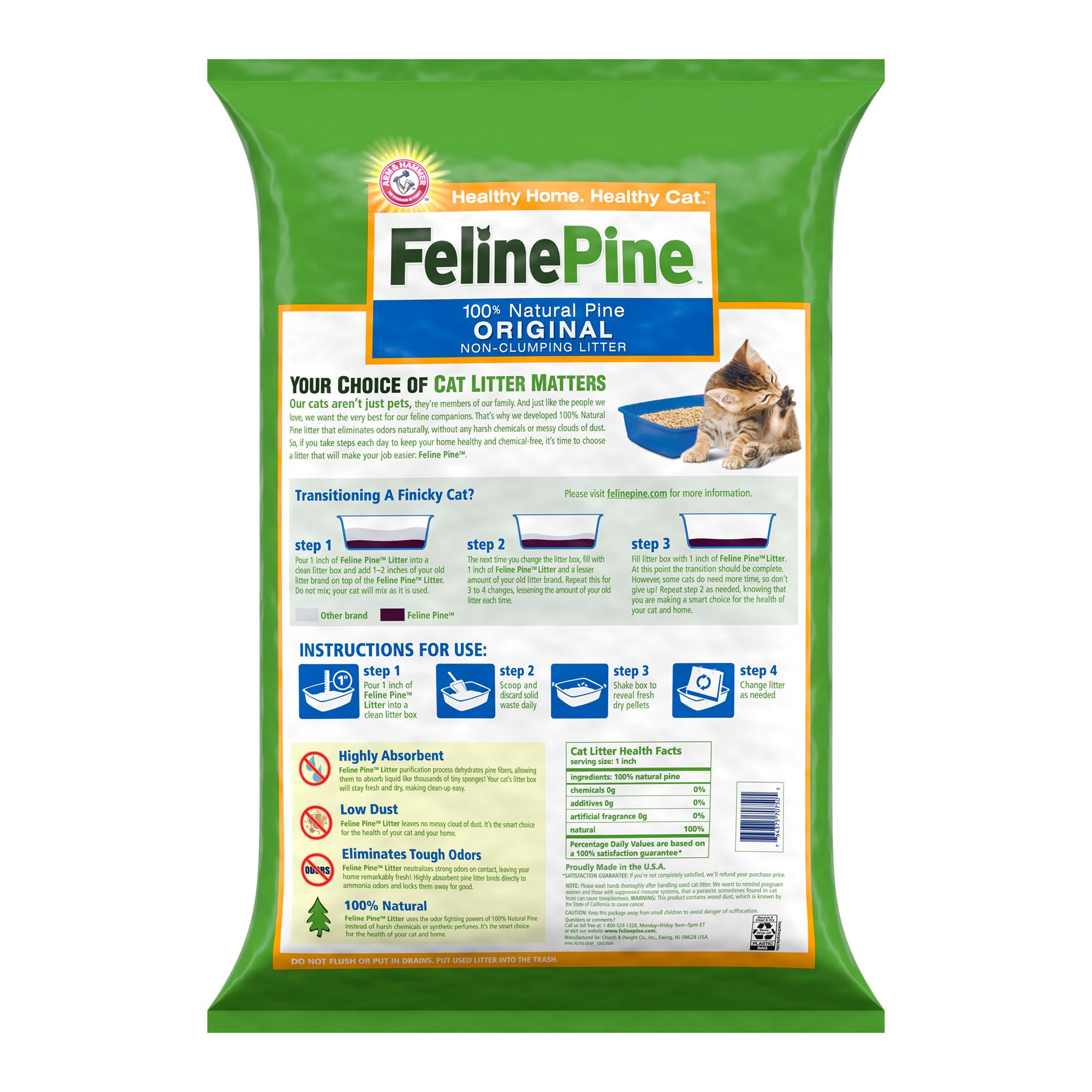 There is no need to add harsh chemicals and synthetic perfumes to litter and feline pine cat litter proves it.
